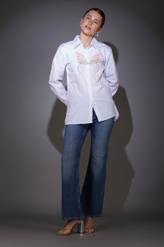 White Shirt with Butterfly Patch