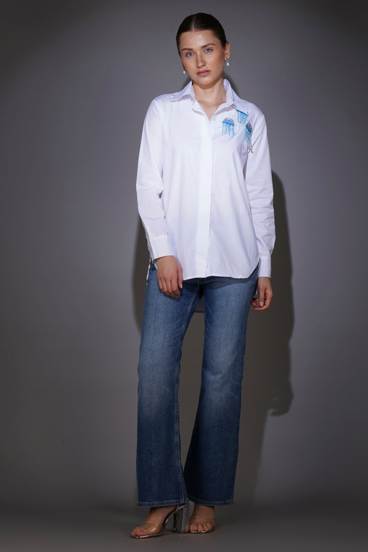White Shirt with Jellyfish Patch