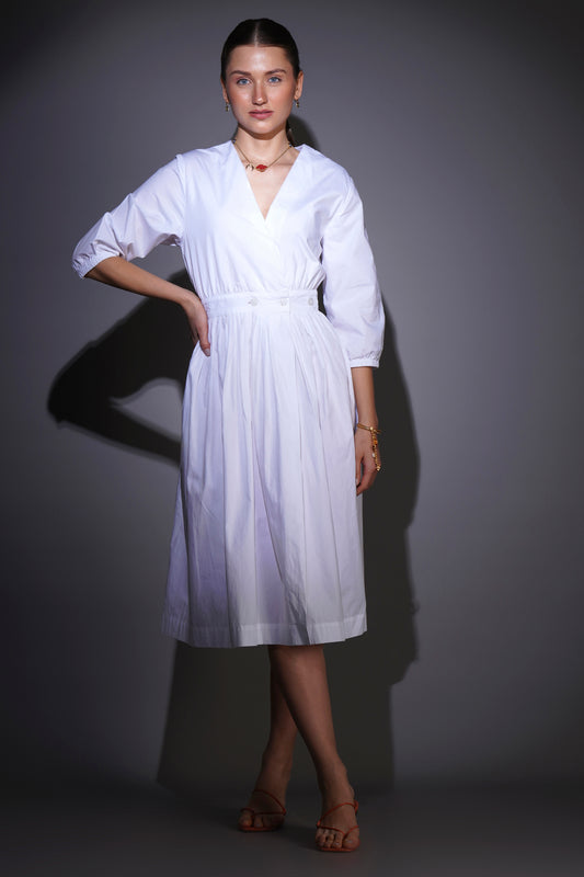 White Front buttoned Midi dress