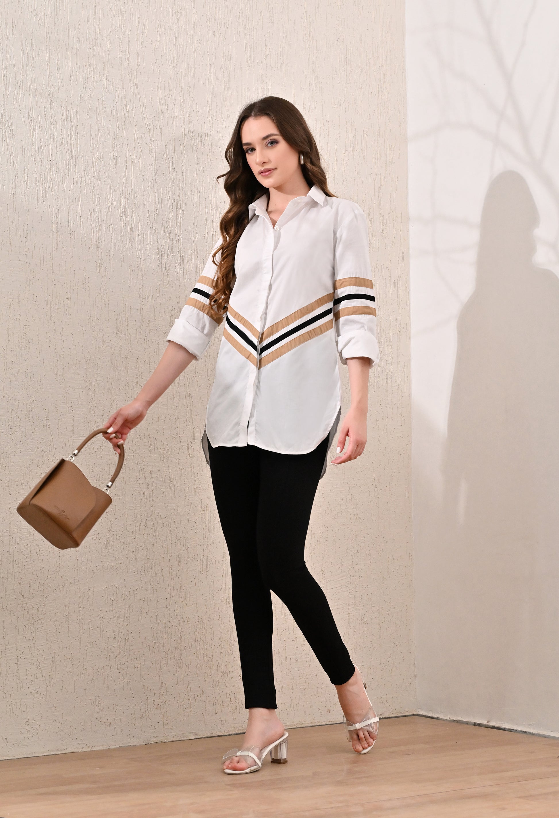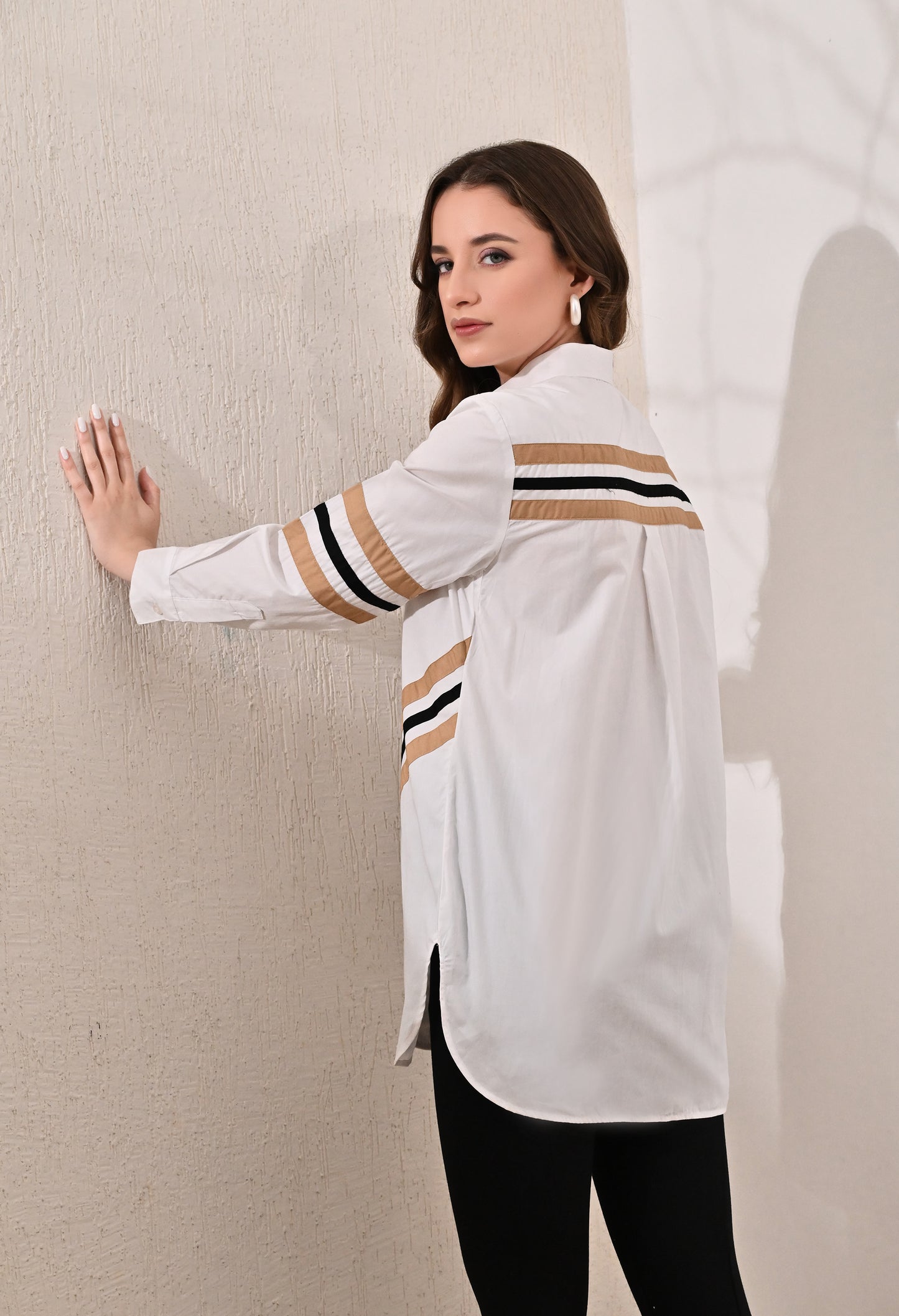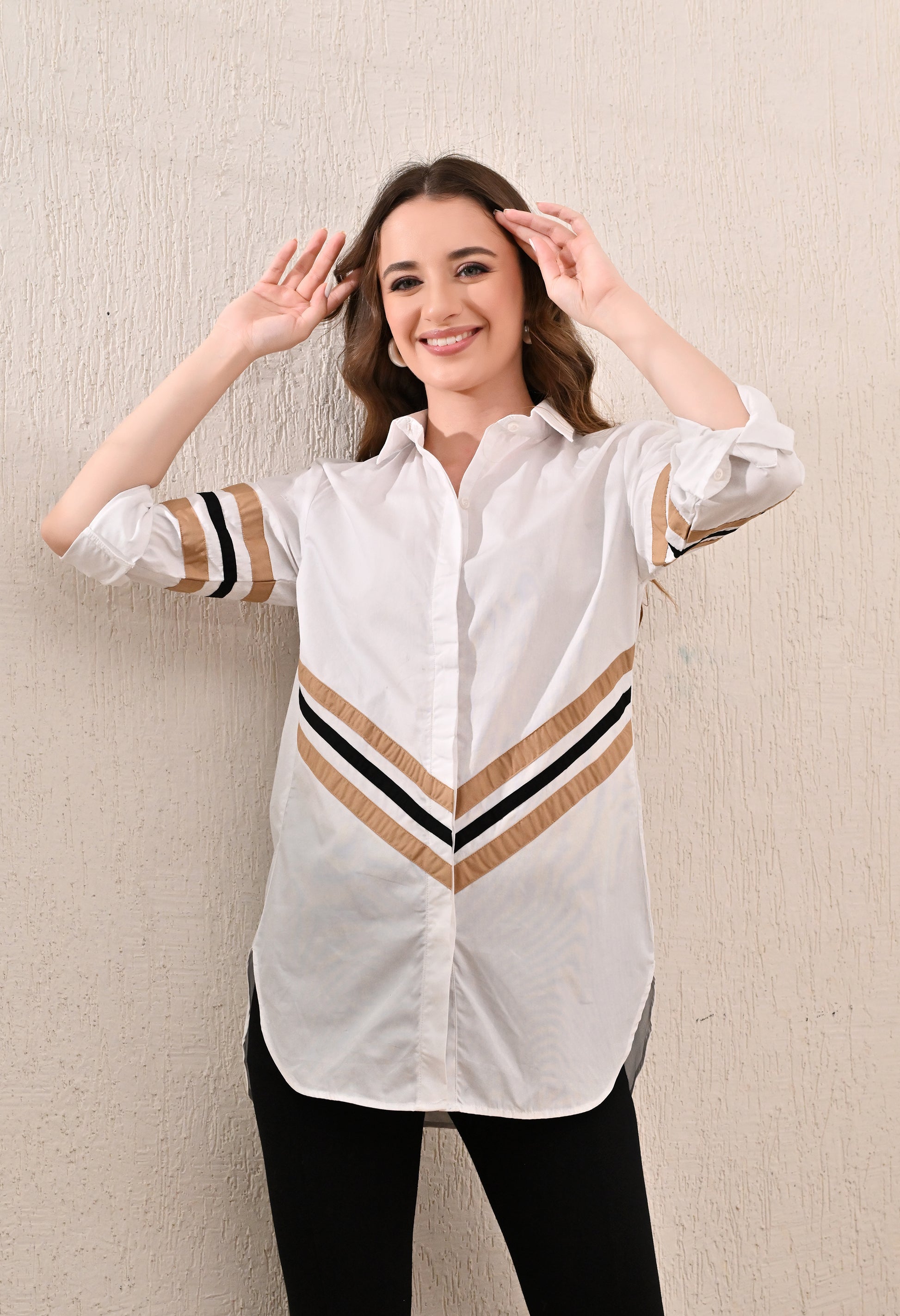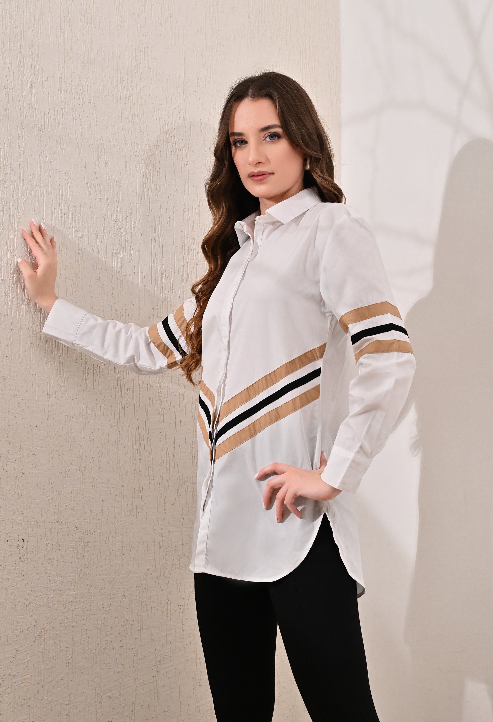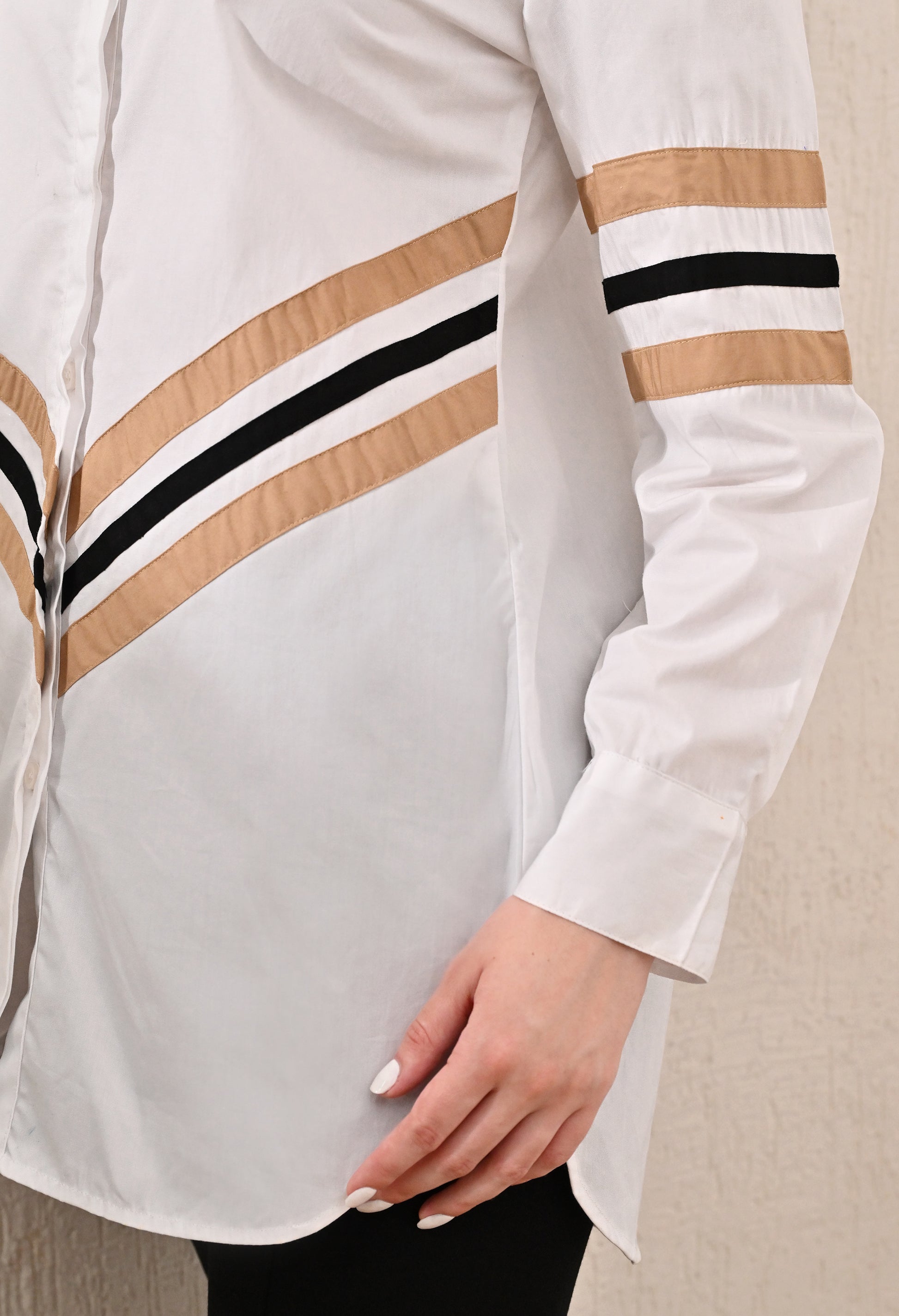 Anysa Signature Beige and Black Striped Shirt