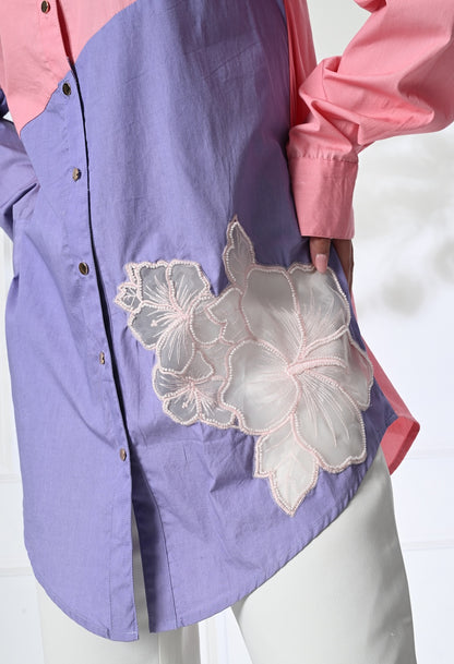 Anysa signature pink and lilac shirt with floral motif