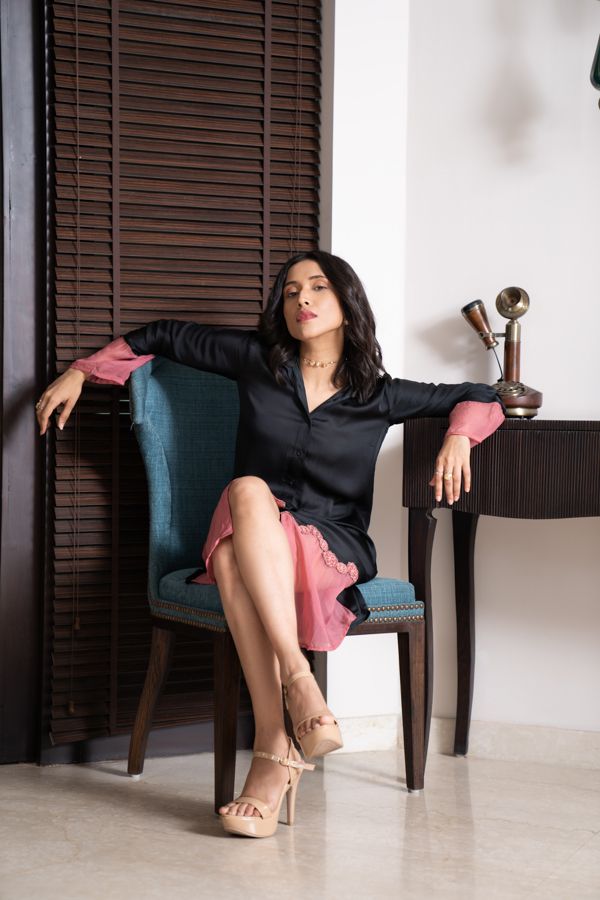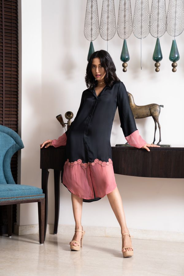 Black and pink sheer dress with floral separates