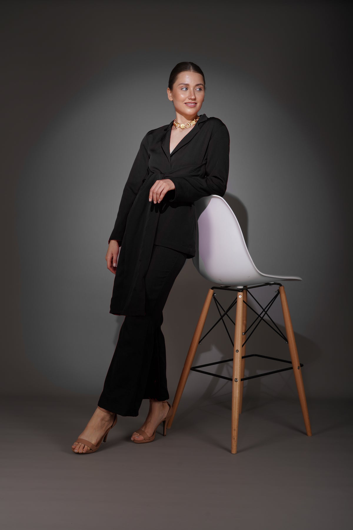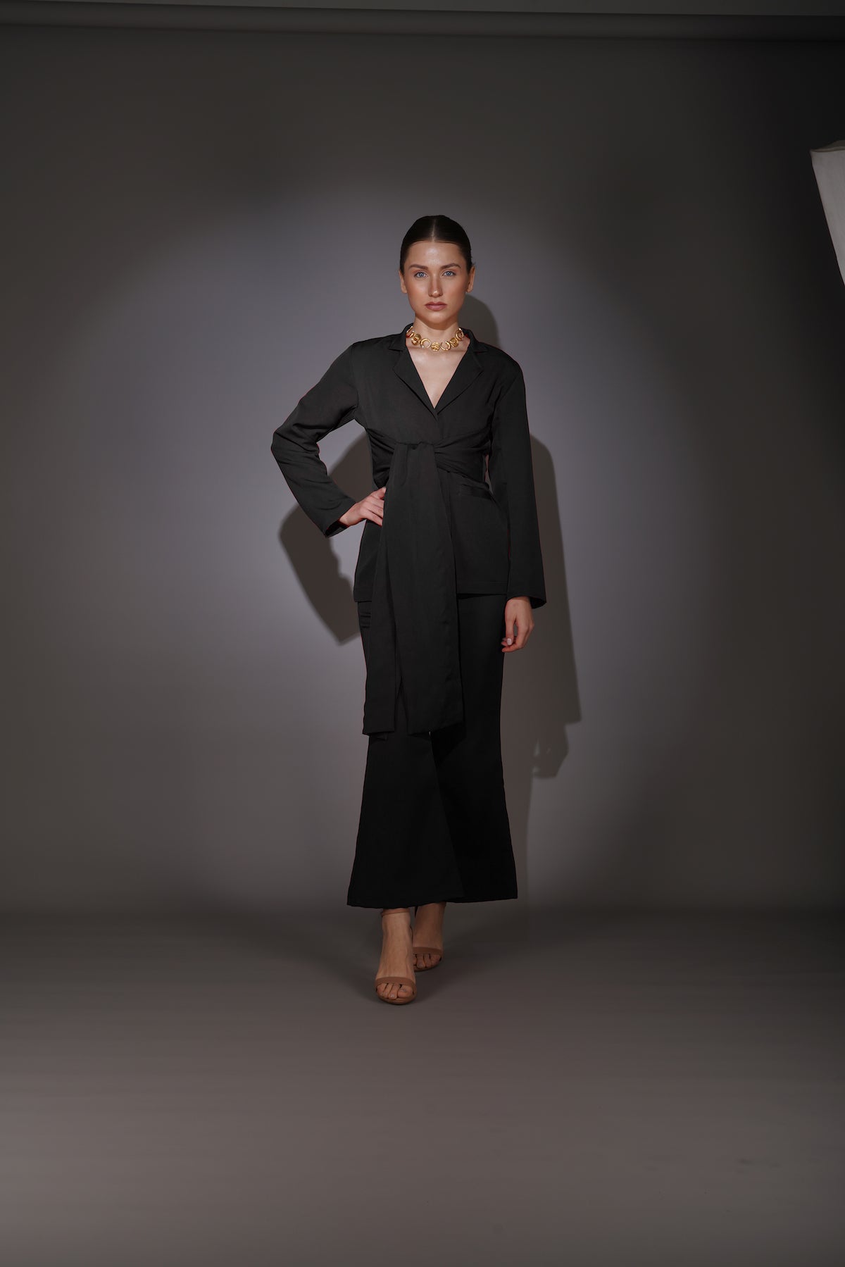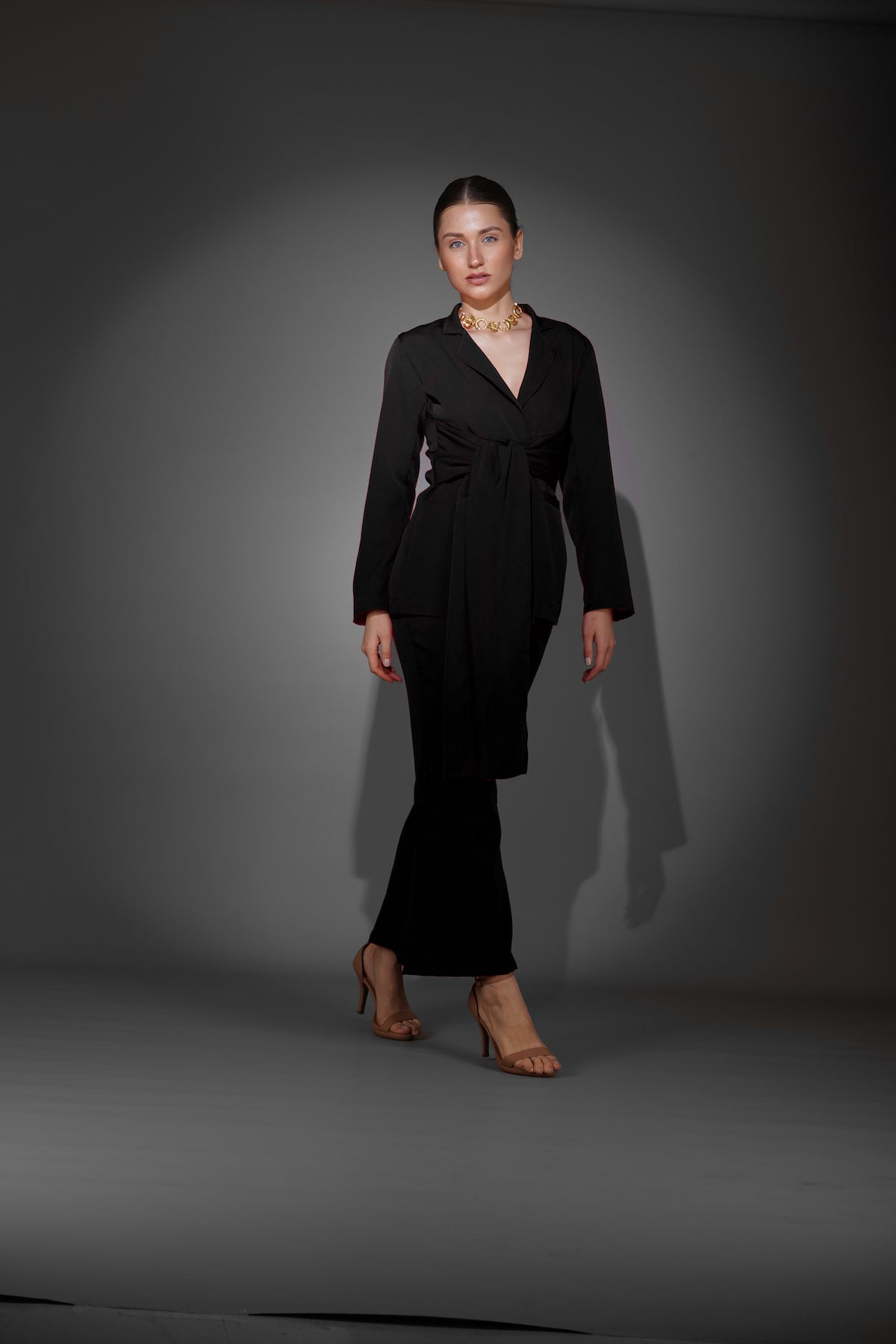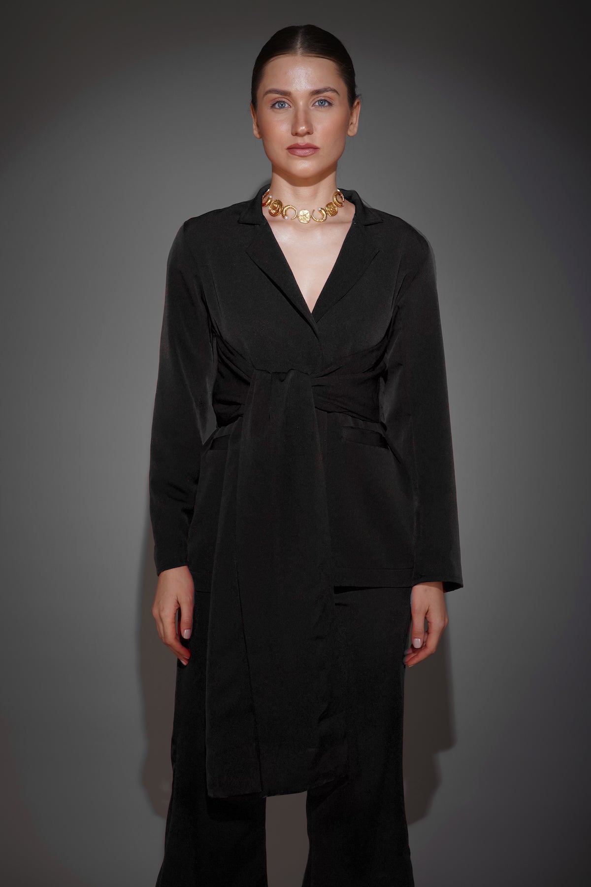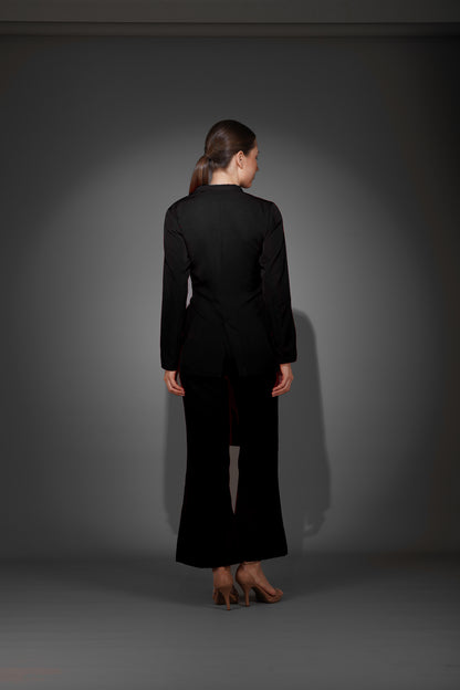 Black Front Tie Blazer Suit