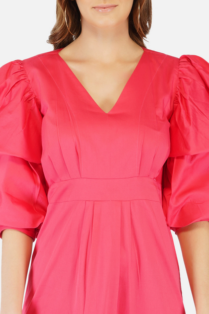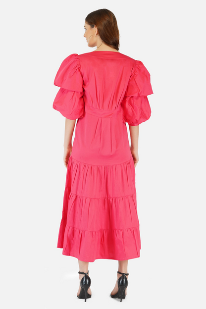 Breezy tiered cotton midi dress pink