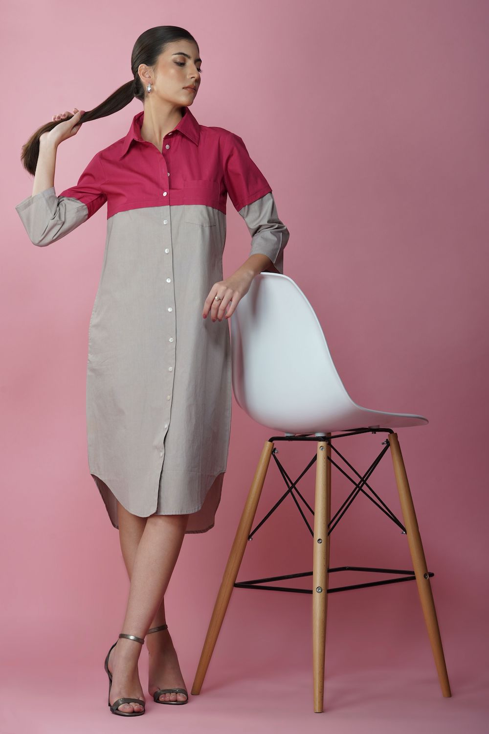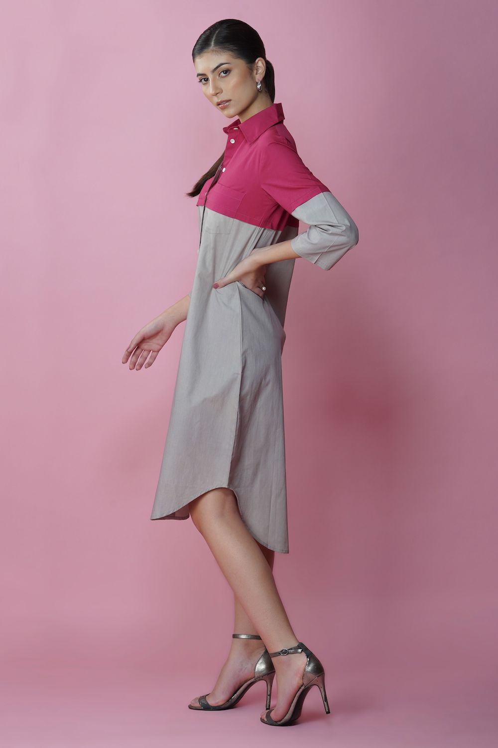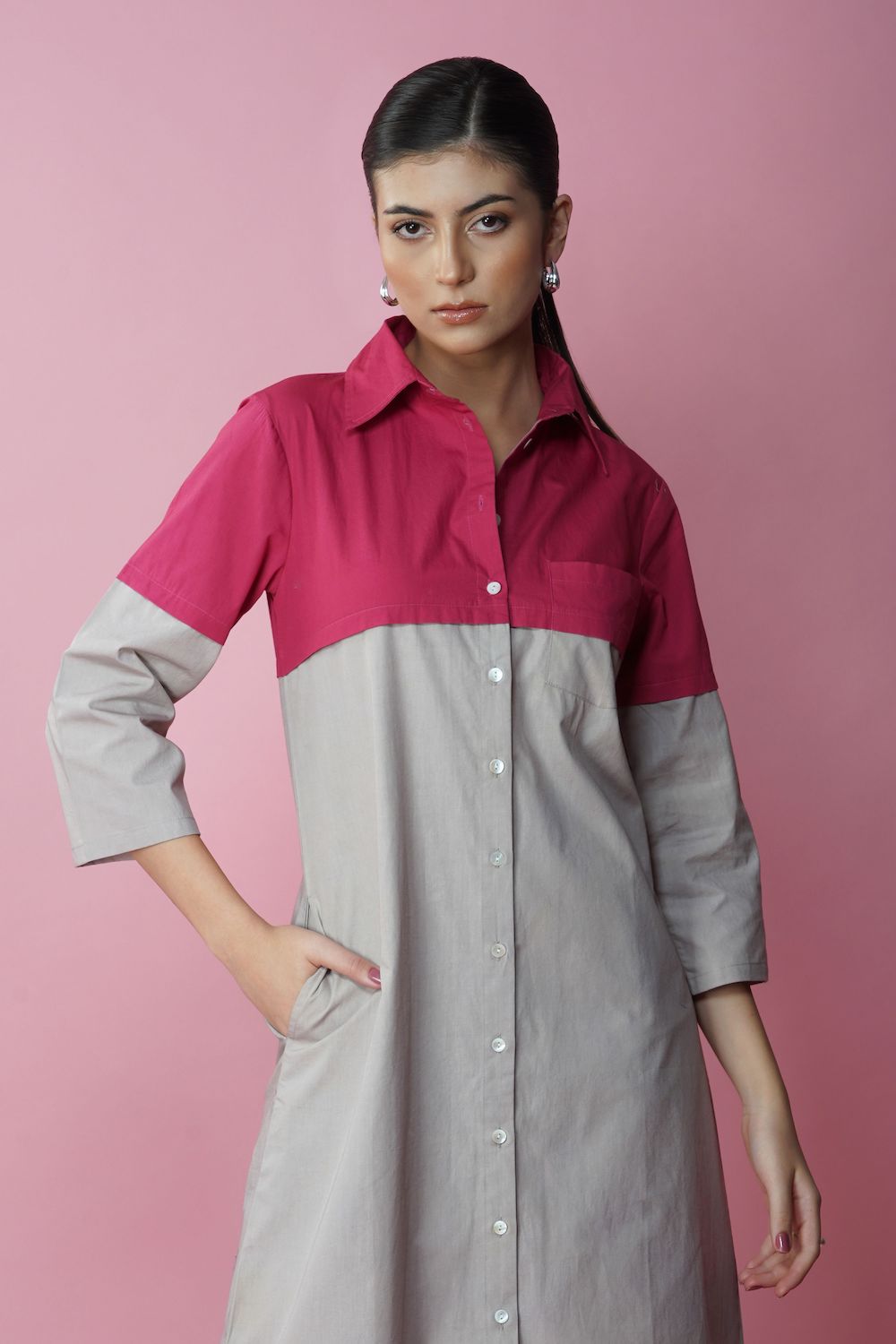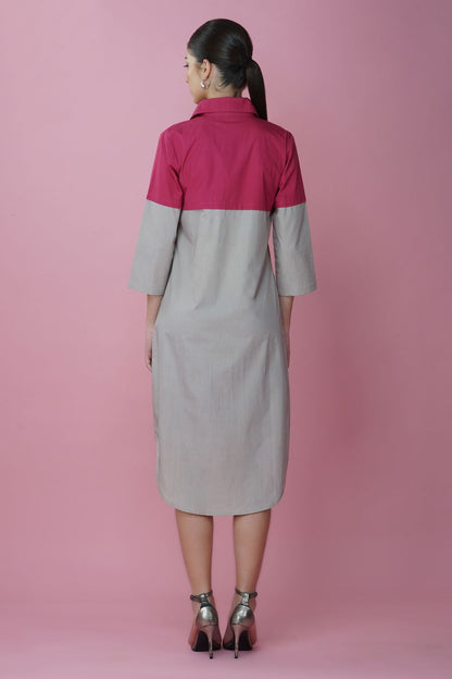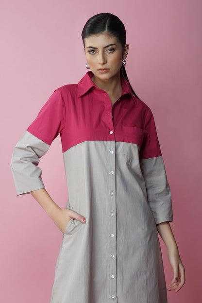 Ecru and magenta long shirt dress