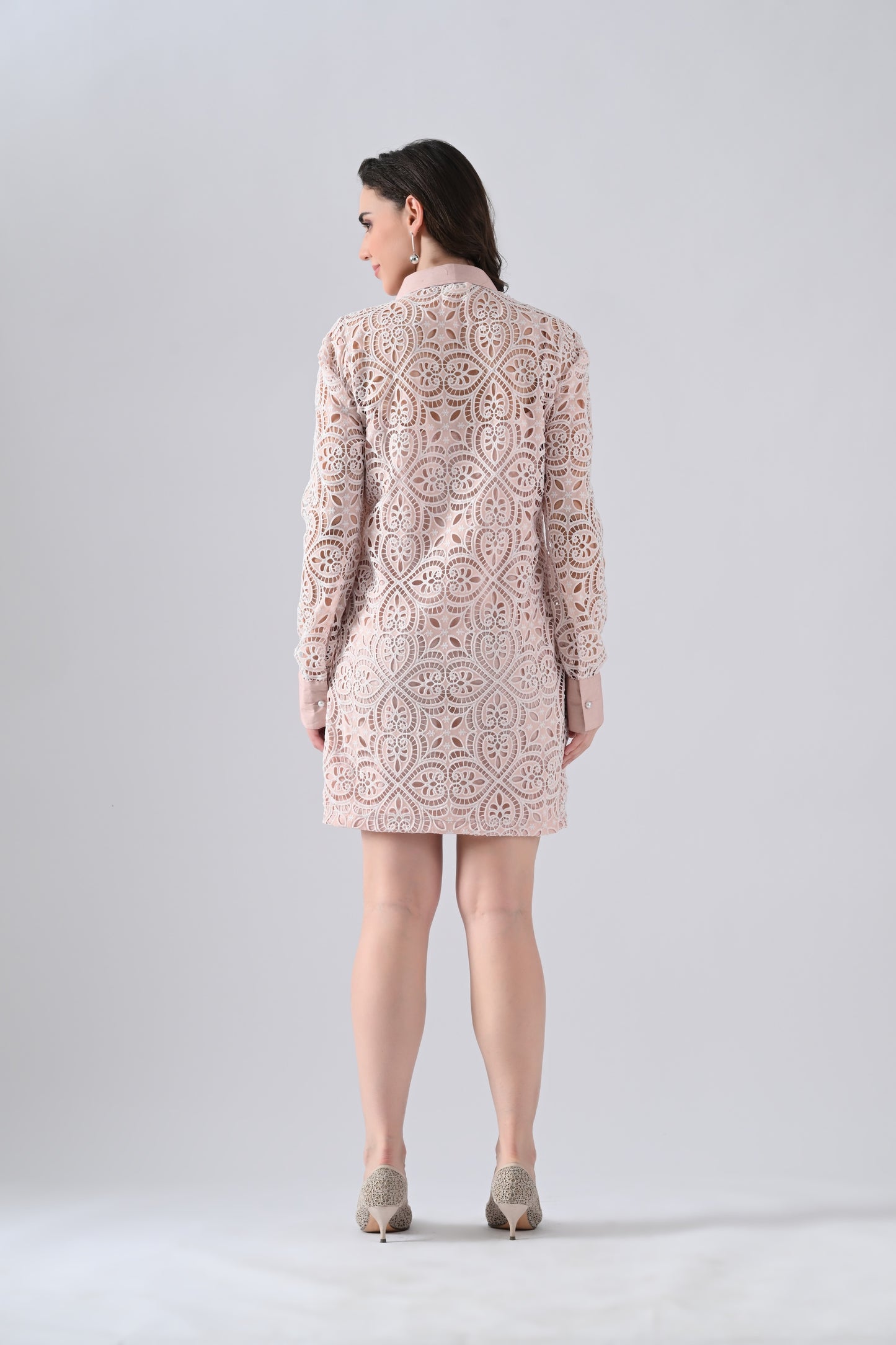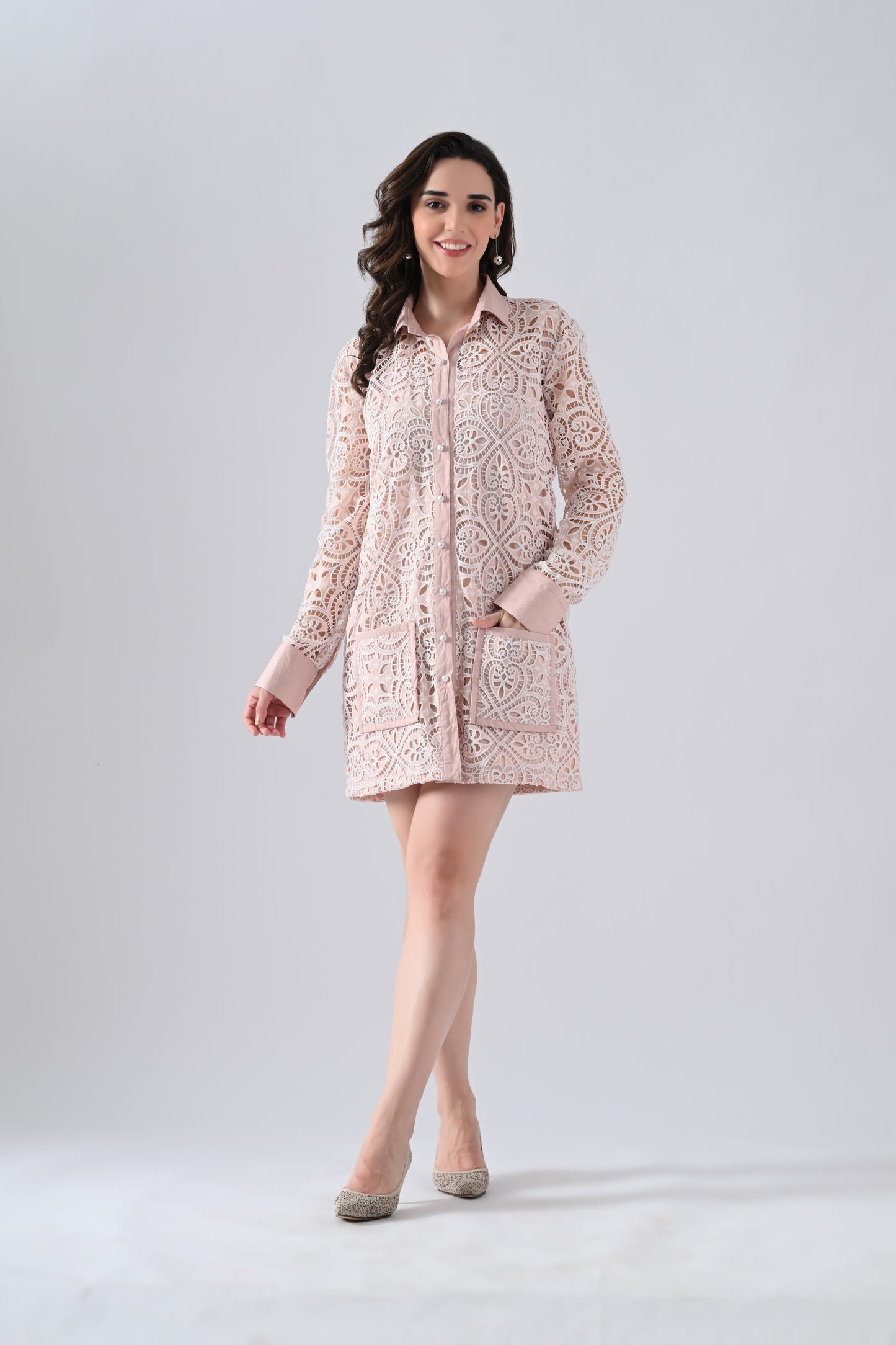 Peach Lace Shirt Dress with Belt