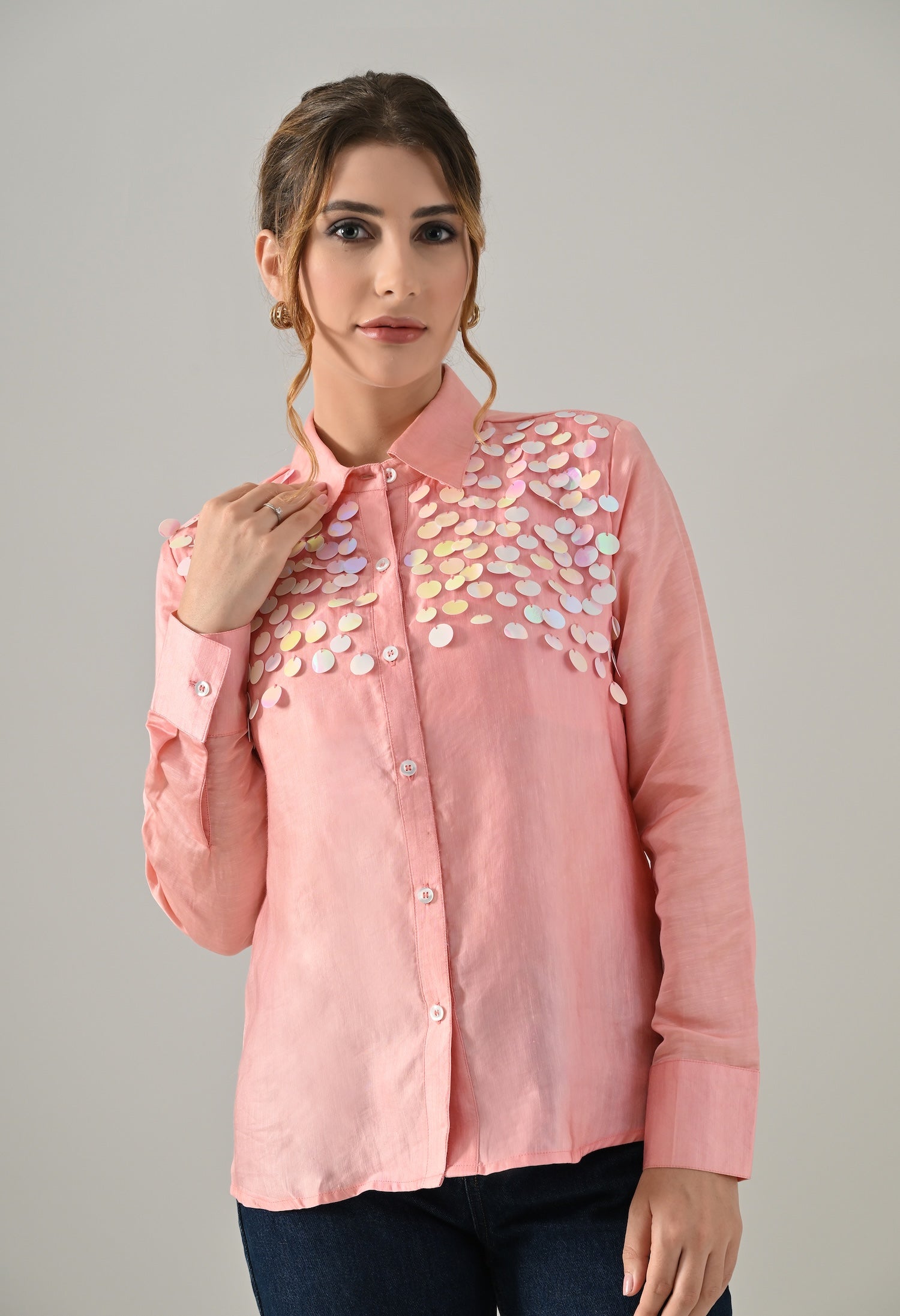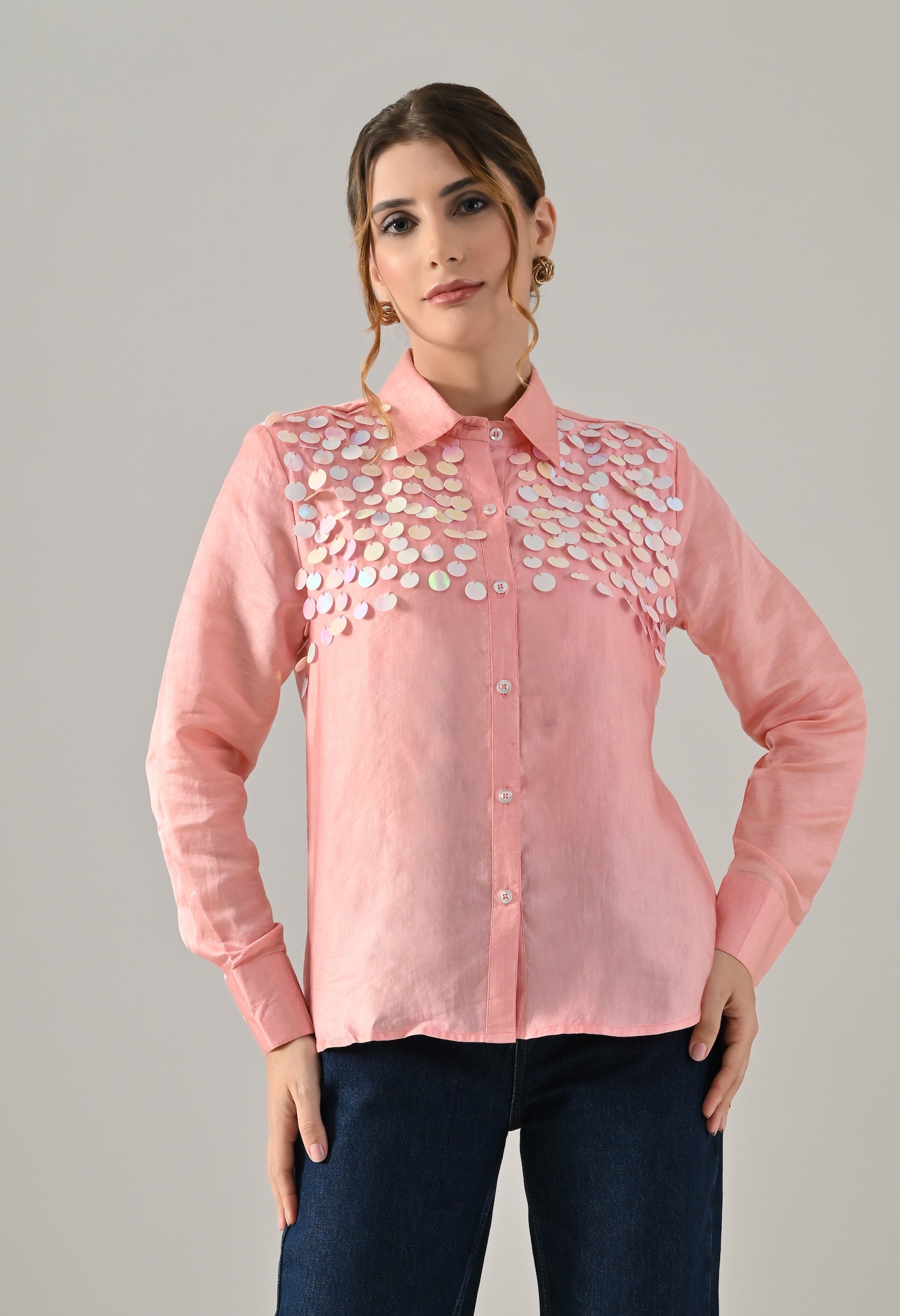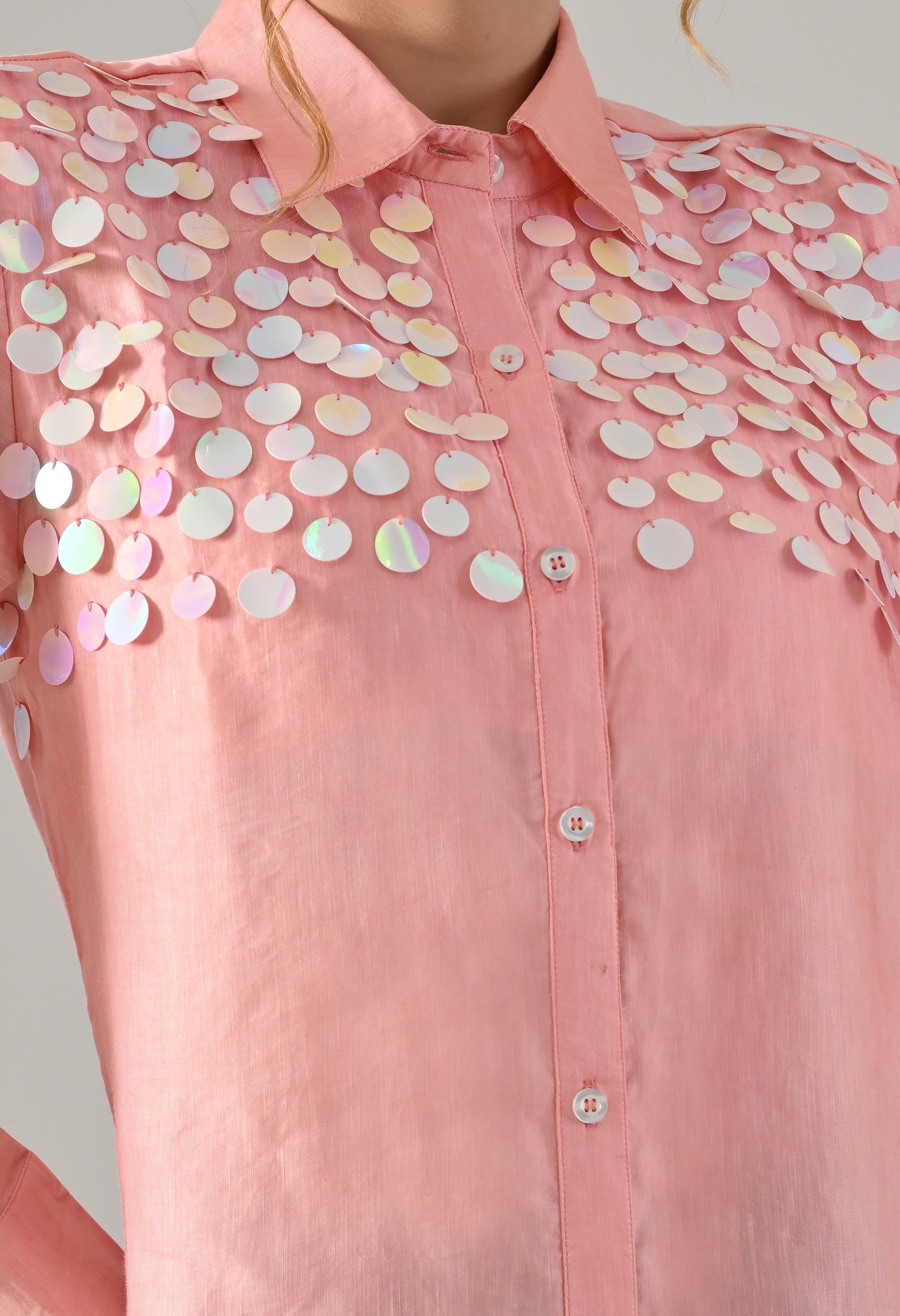 Pink organza shirt with sequence detailed embroidery