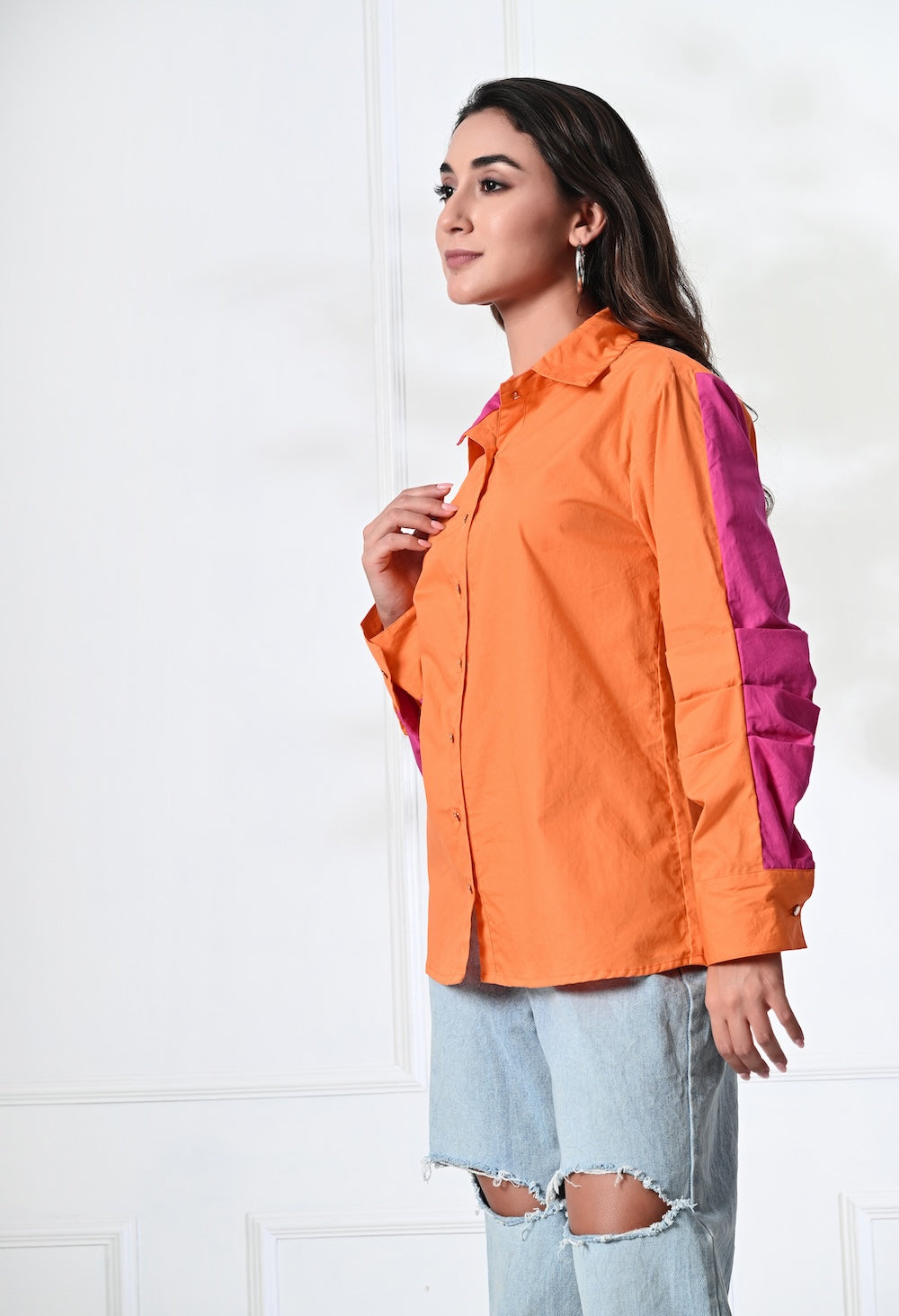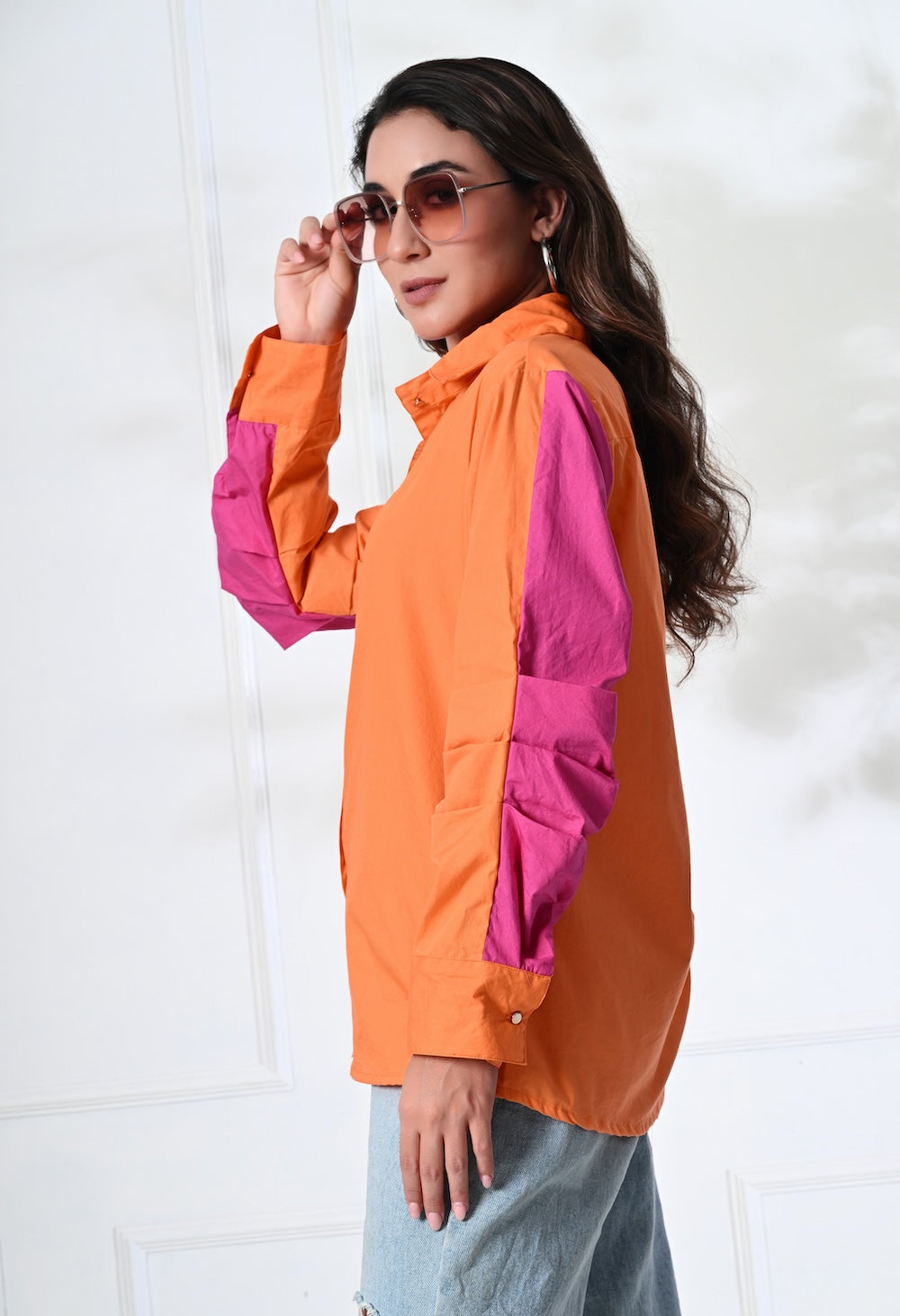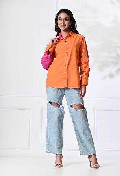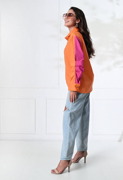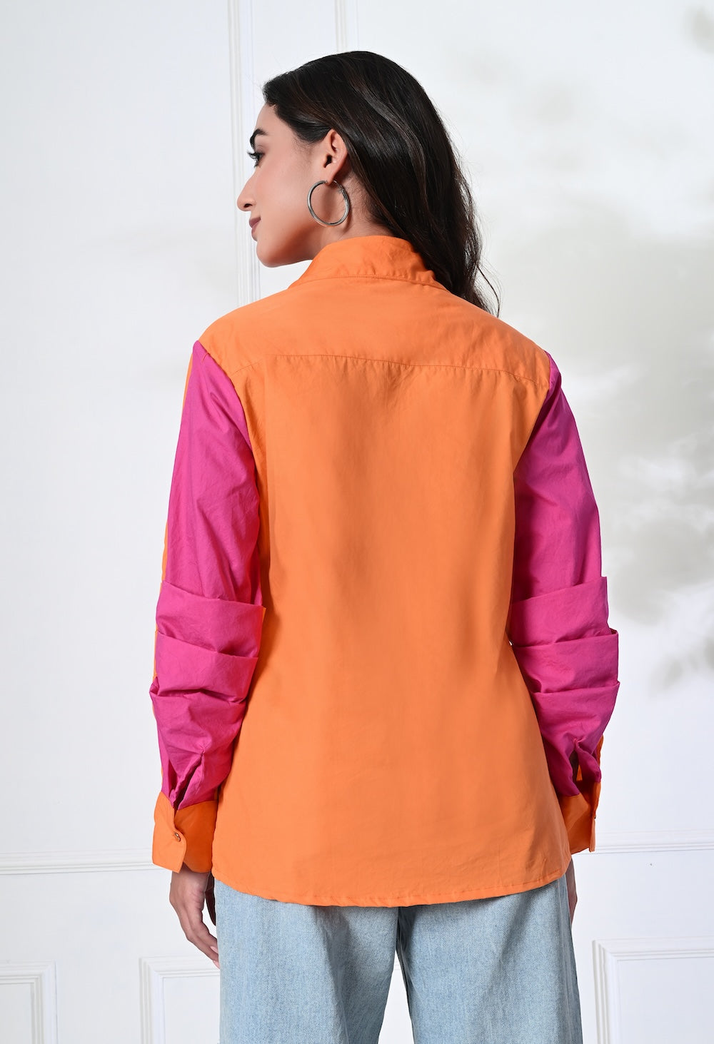 Perfect for casual outings or lounging at home, this shirt in dual pink and orange tone is perfect to bring summer charm to your wardrobe.